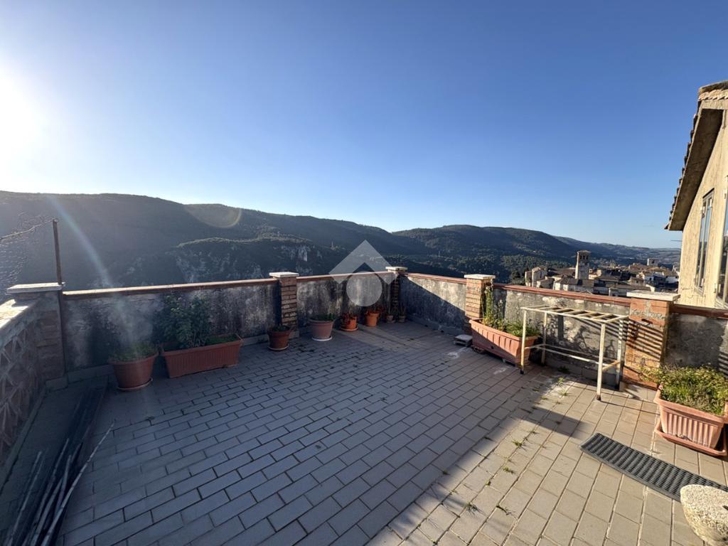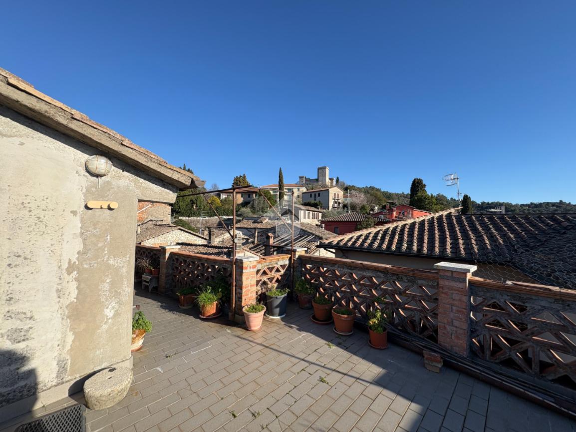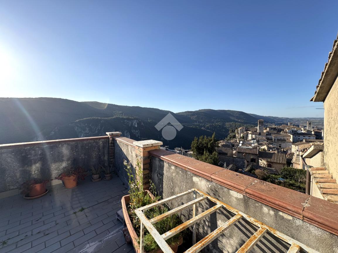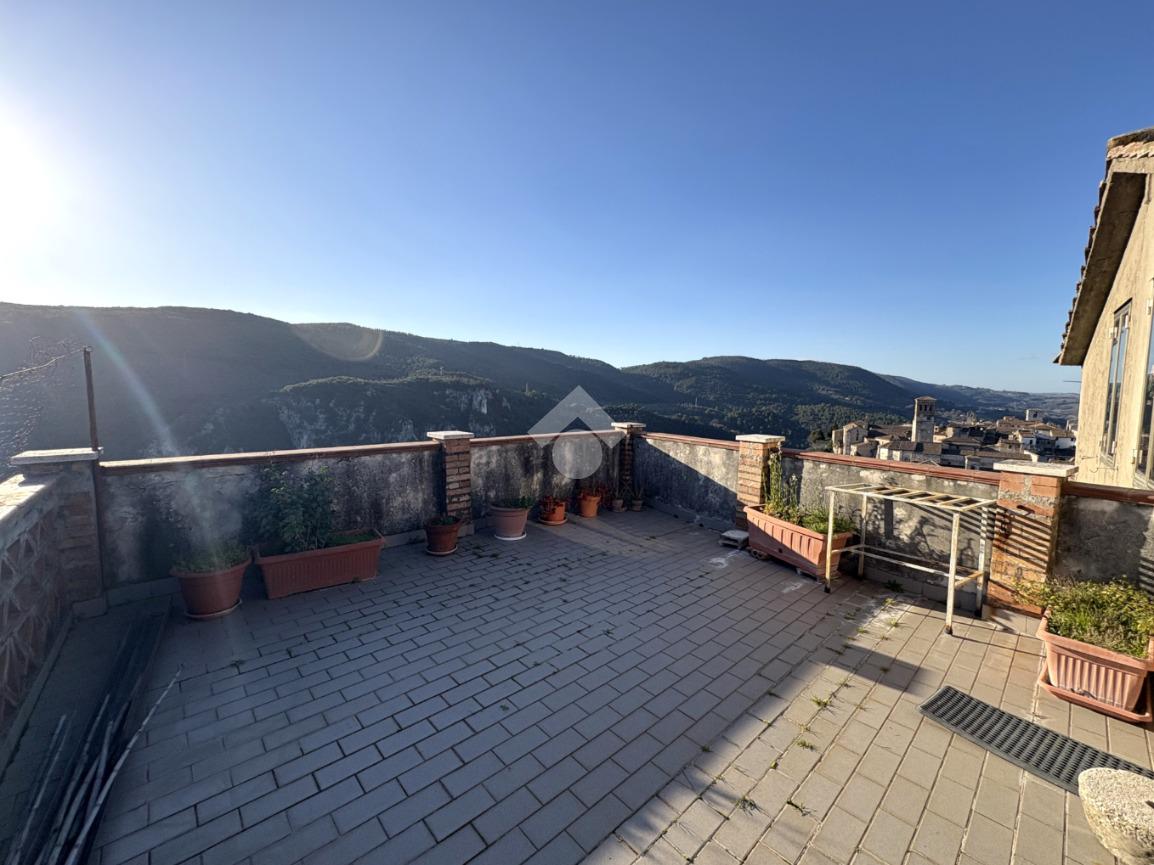 Nella zona più alta del caratteristico centro storico di Narni e più precisamente in vicolo V Aspromonte, proponiamo in vendita un appartamento di grande metratura, ideale per chi cerca ampi spazi vivibili. L'immobile, risalente al 1800, si sviluppa su due livelli e offre un ingresso indipendente che garantisce privacy e autonomia. Dal cancello al piano terra, una scala esterna ci conduce al primo piano dove si trova l'ingresso dell'abitazione, entrando l'appartamento si presente fin da subito luminoso ed accogliente, grazie alla sua ottima esposizione su quattro lati. La casa si compone di un salotto con terrazzo abitabile ideale per cene all'aperto, una cucina con balcone, un soggiorno che può essere adibito a terza camera, una camera matrimoniale, una camera doppia ed infine un bagno con vasca e finestra. Dal disimpegno troviamo una scala che ci permette di salire al piano superiore, caratterizzato da un locale chiuso a veranda ed un ampio terrazzo che ci regala una vista incantevole sulla Rocca di Narni, le gole del Nera e gran parte del centro storico, ideale per momenti di relax e per ammirare il panorama circostante . L'appartamento è in ottimo stato, pronto per essere abitato, e rappresenta una soluzione abitativa versatile e funzionale che unisce il fascino storico a comfort moderni.