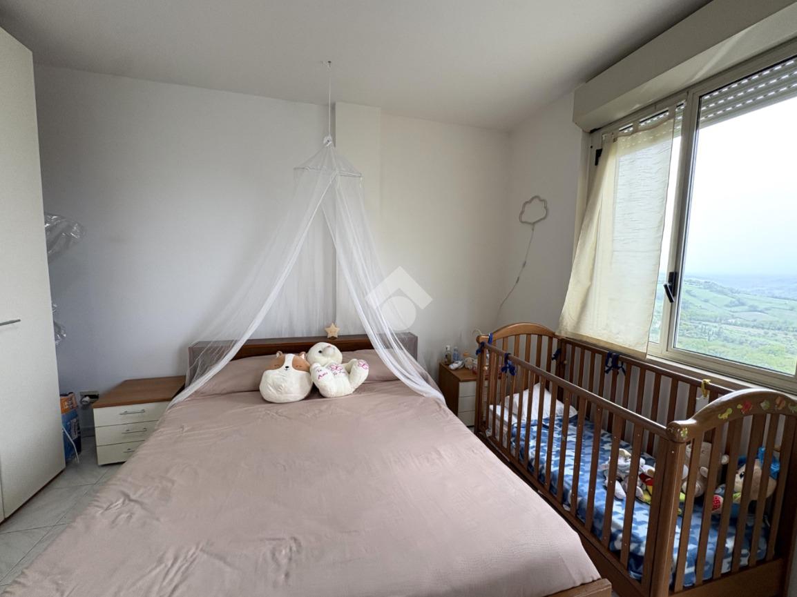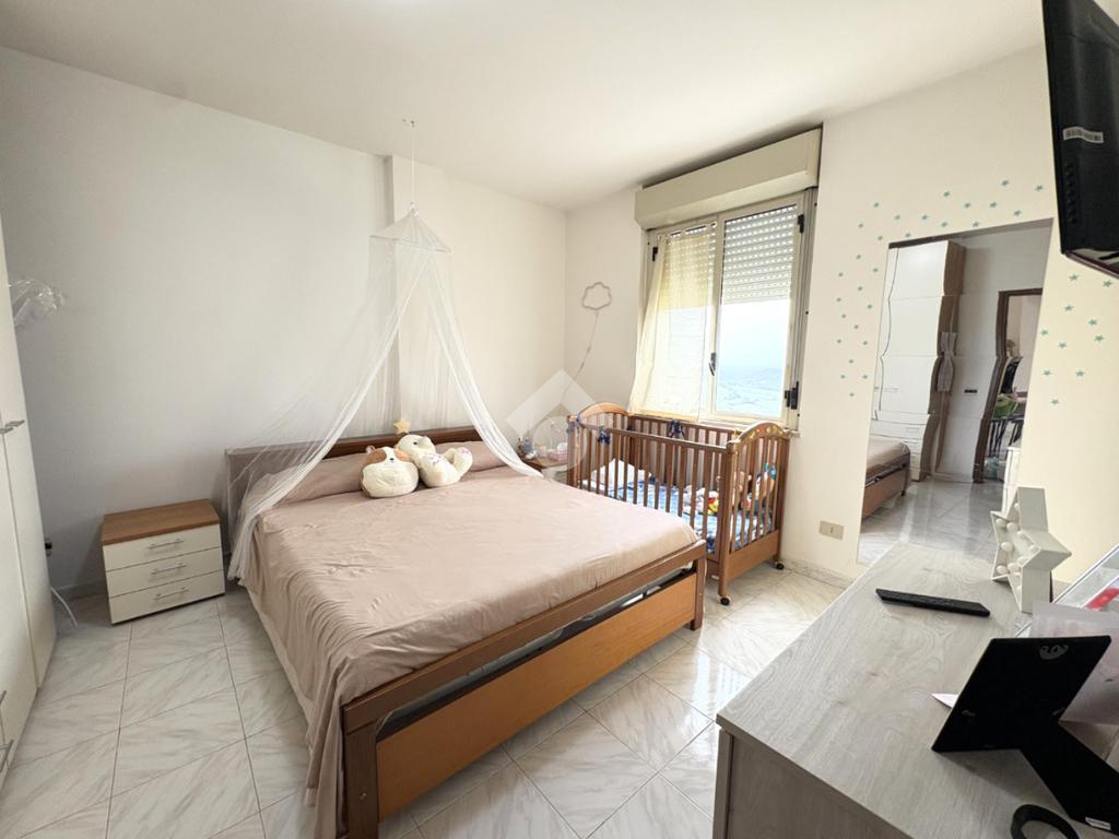 La zona notte include una spaziosa camera matrimoniale dotata di balcone molto panoramico, dal quale è possibile godere di suggestivi tramonti. Completa la proprietà un bagno finestrato.
