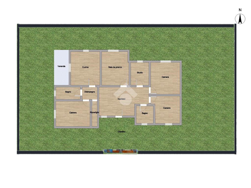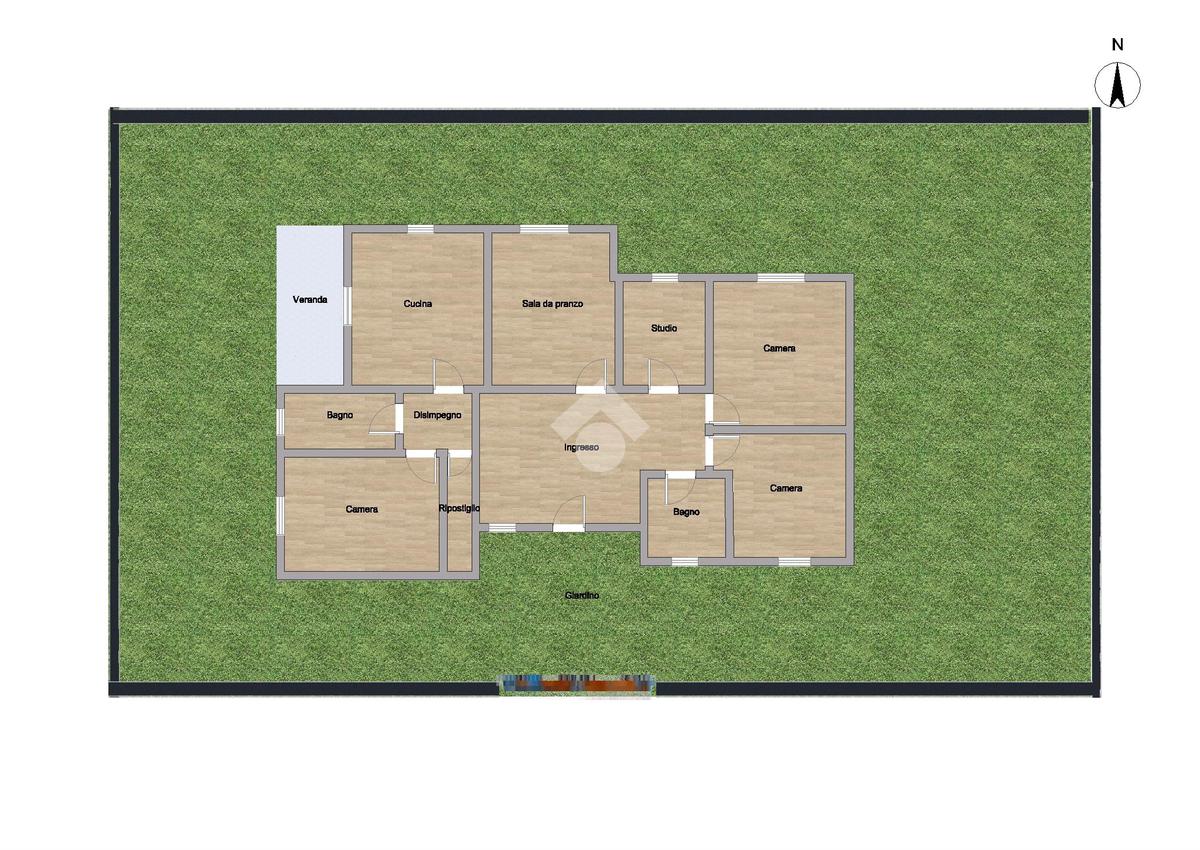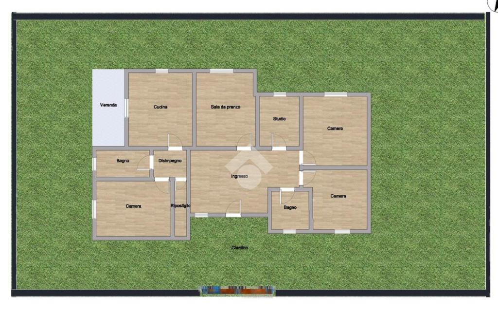 La casa si compone di un luminoso soggiorno, una cucina abitabile con termo camino, che affaccia direttamente sul giardino della casa, tra camere da letto, due bagni entrambi finestrati ( con possibilità di un terzo bagno), uno studio e uno sgabuzzino.