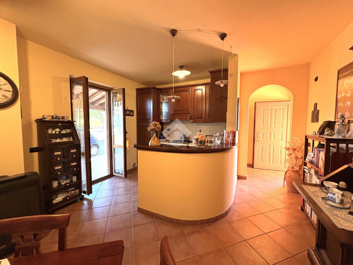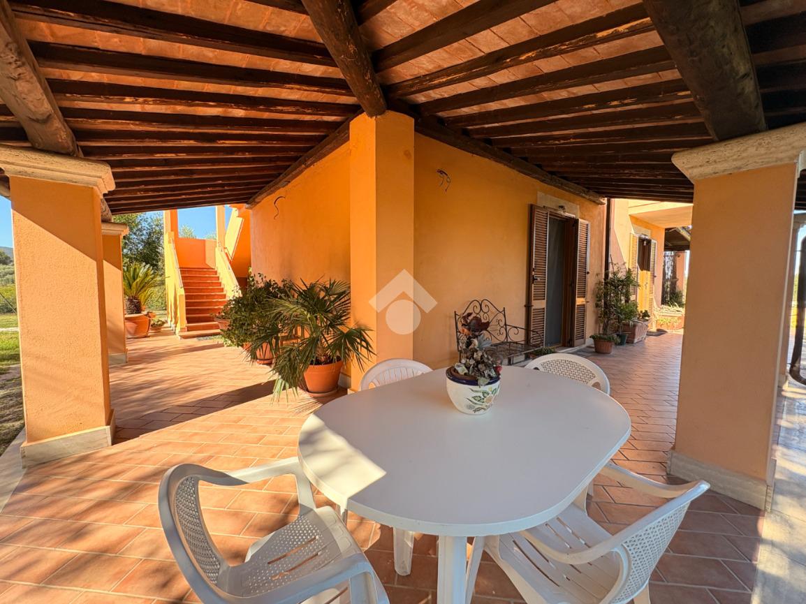 Quest’ultima affaccia direttamente sul portico, interamente pavimentato, e sul giardino della proprietà.